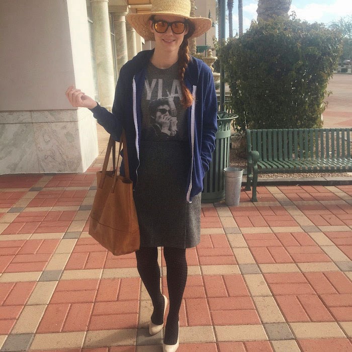 “The first few items were great: my Bob Dylan tee, with a gray skirt, and tights. I think I’ll put this in my rotation… But then before I could finish, he pointed to my nude heels”